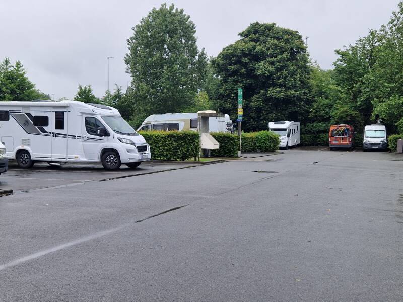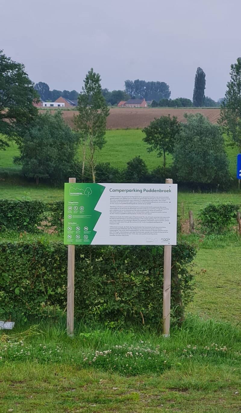 Tot slot: terug naar huis via Geel, nog net in België. Hier kun je overnachten op een parkeerterrein bij een sportgelegenheid. Tegelijk mogelijkheid tot legen van het toilet en vuil water lozen. Handig om meteen met lege tanks naar huis te rijden.