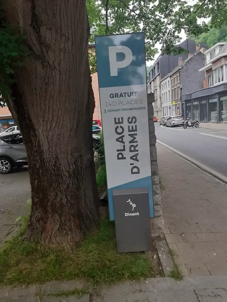 Er is een camping voordat je Dinant inrijdt, maar als je gratis wilt staan is er even verderop, tegenover Onze Lieve Vrouwe Abdij Leffe, ruime parkeergelegenheid waar je gratis kunt staan en zo Dinant inloopt.